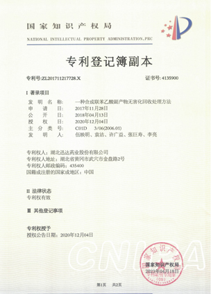 湖北迅達(dá)藥業(yè)股份有限公司是專業(yè)從事醫(yī)藥原料藥及中間體生產(chǎn)經(jīng)營(yíng)的國家重點(diǎn)高新技術(shù)企業(yè),也是國家 4A 標(biāo)準(zhǔn)化良好行為企業(yè)、湖北省智能制造試點(diǎn)示范企業(yè)、湖北省國際科技合作基地、湖北省信息化與工業(yè)化融合試點(diǎn)示范企業(yè)、湖北省創(chuàng)新型企業(yè)、湖北省上市后備“金種子”企業(yè)、省級(jí)“專精特新”企業(yè)、上云標(biāo)桿企業(yè)。公司被評(píng)為湖北省醫(yī)藥工業(yè)五十強(qiáng)、湖北省醫(yī)藥行業(yè)創(chuàng)新型企業(yè)十強(qiáng)、湖北省醫(yī)藥行業(yè)出口型企業(yè)十強(qiáng)、湖北省優(yōu)秀企業(yè)、湖北省“重合同守信用”企業(yè)、湖北省模范勞動(dòng)關(guān)系和諧企業(yè)、湖北知識(shí)產(chǎn)權(quán)示范企業(yè)、中國外貿(mào)出口先導(dǎo)指數(shù)樣本企業(yè)。
